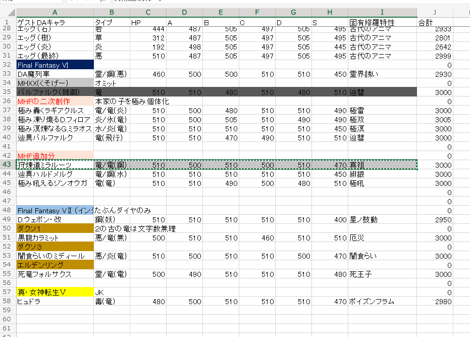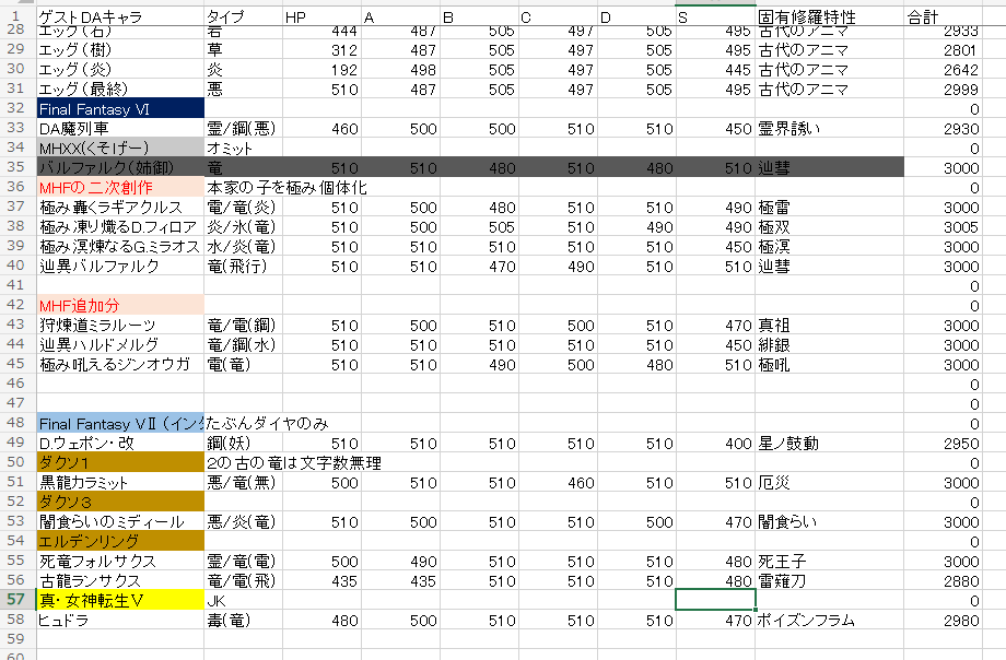 天異バルファルク 竜(飛行) 510 510 470 490 510 510 辿彗(辿彗+修羅の鼓動+彗星+リクヘスト+マジックガード+防塵+レイジ+エールエンケ+レヴィアナ+閃武+ジルバッド+メテオレイン+すべての物理、特殊技強化)